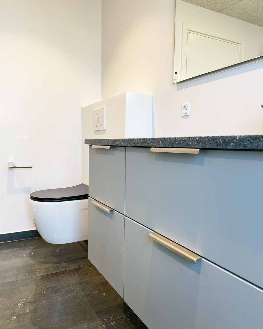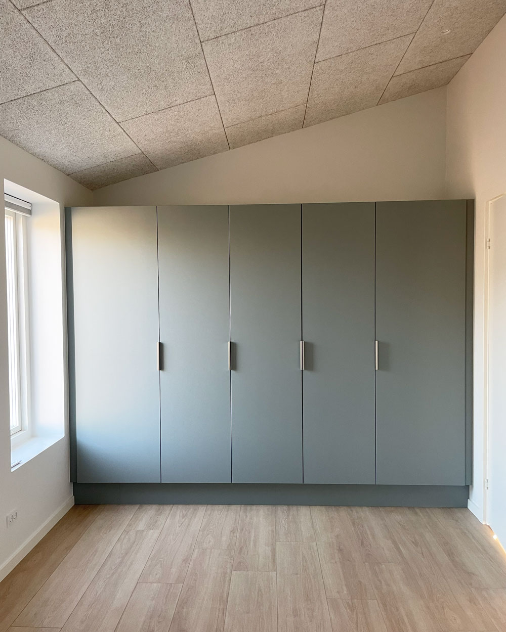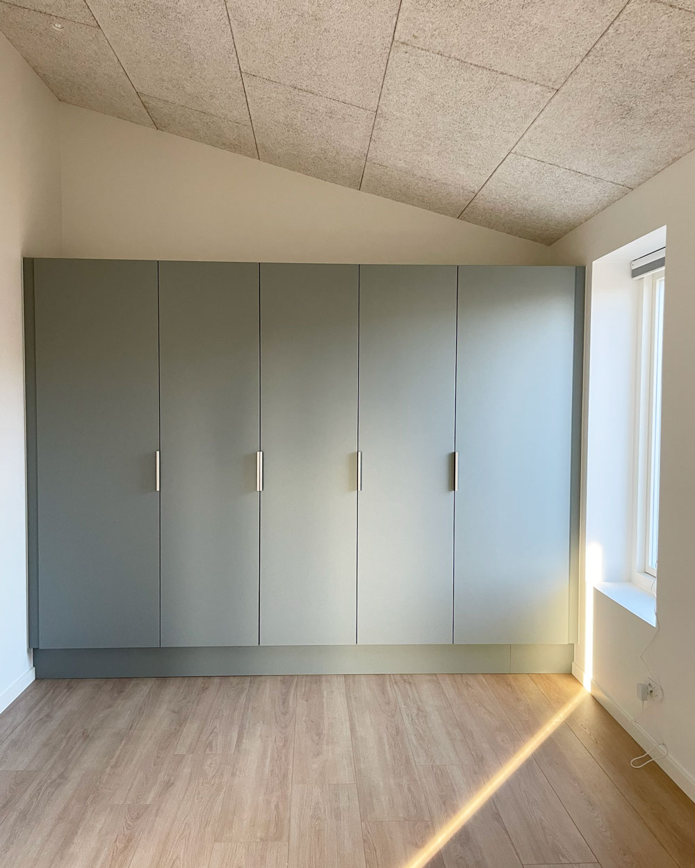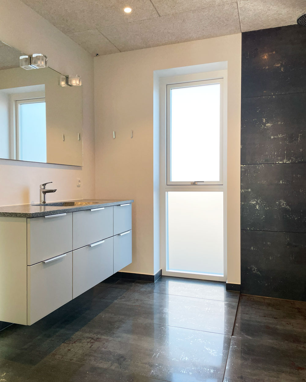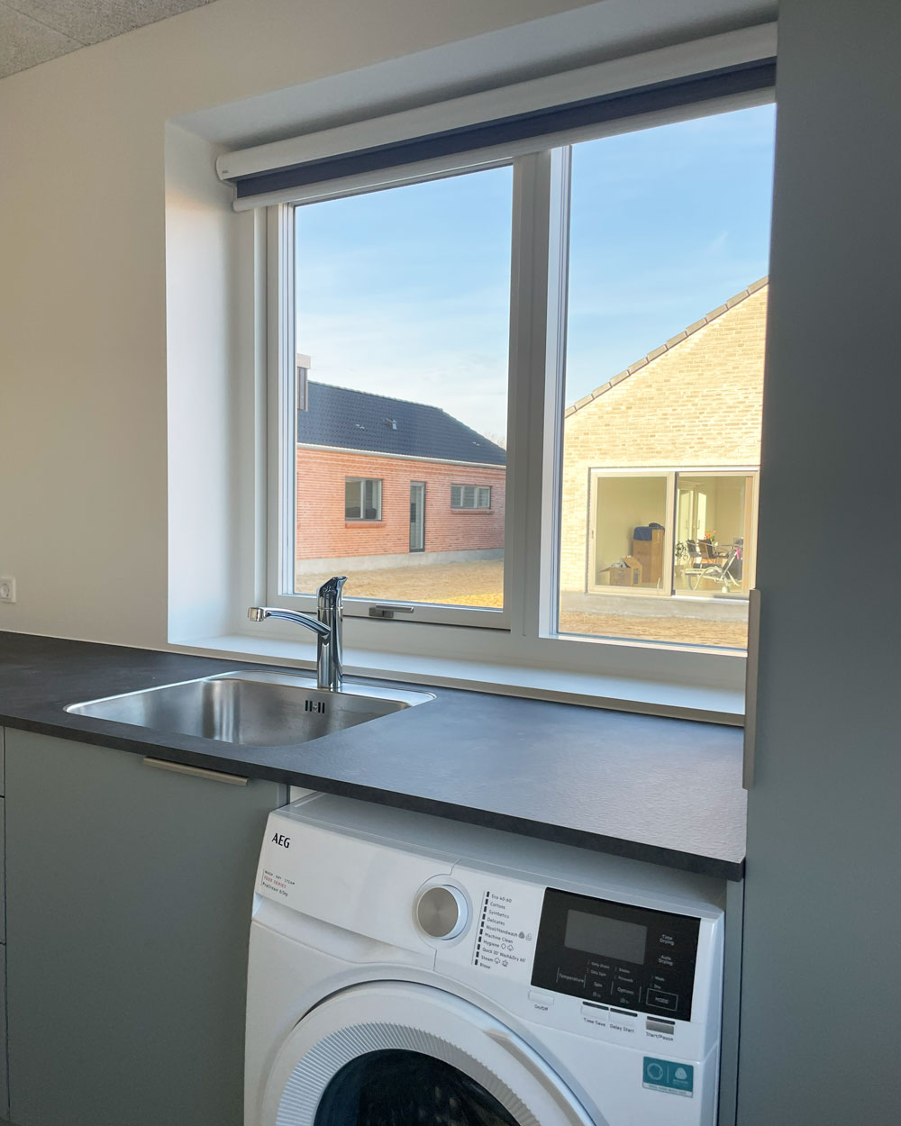 Vi har afleveret et 130 m² længehus til Lotte og Jan på Grøndalsvej i Silkeborg. Huset har en overdækket udendørs terrasse med lys træbeklædning, der skaber en naturlig og hyggekrog i haven. Inde i boligen går de douce grønne skabselementer igen på værelser, badeværelse og i køkkenet, hvor udtrykket samler hele hjemmet. Bryggers, gang og badeværelse er udført med eksklusive grønne klinker med flot farvespil. Udenfor fuldendes boligen af en udvidet carport med ladestander.