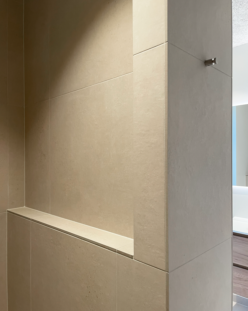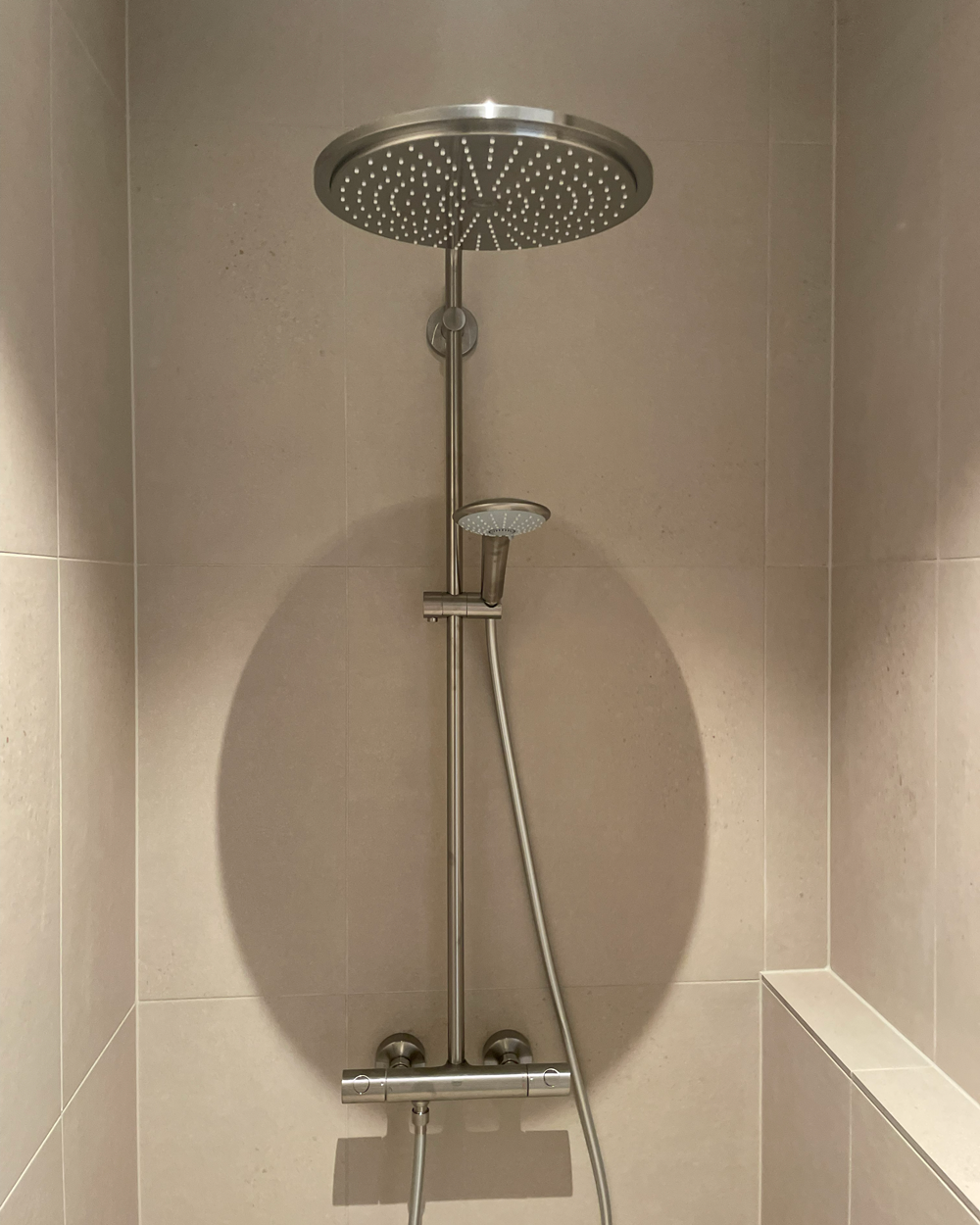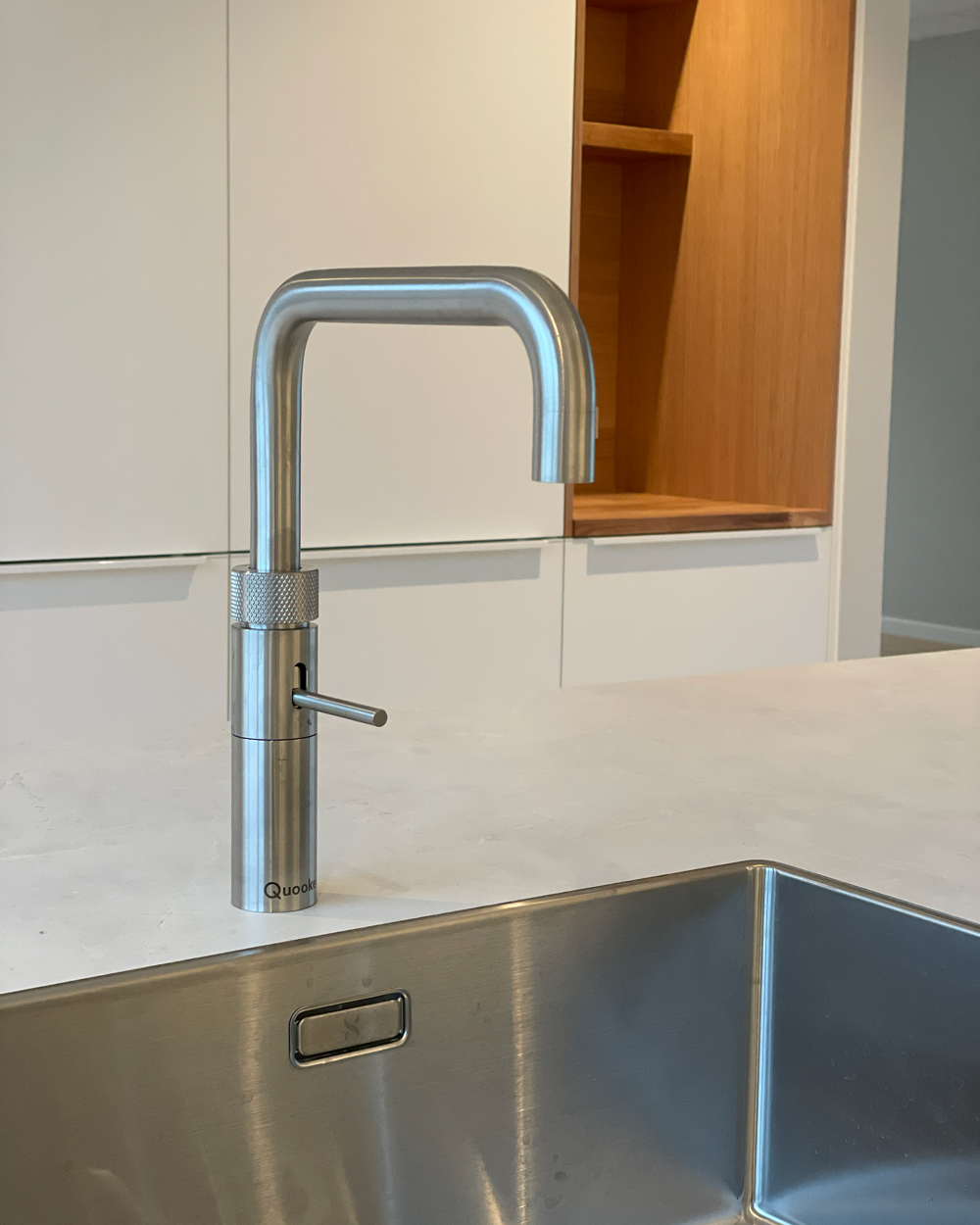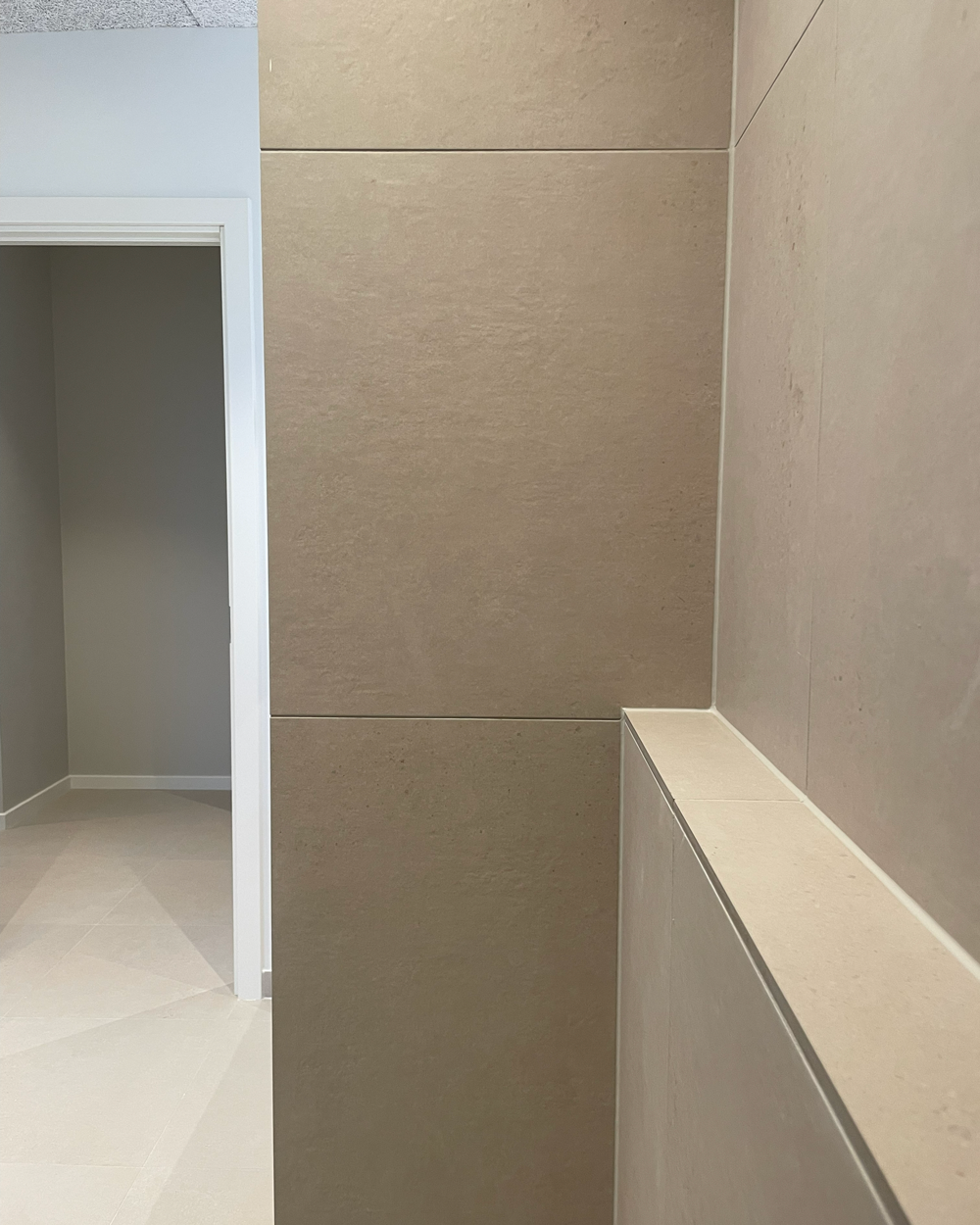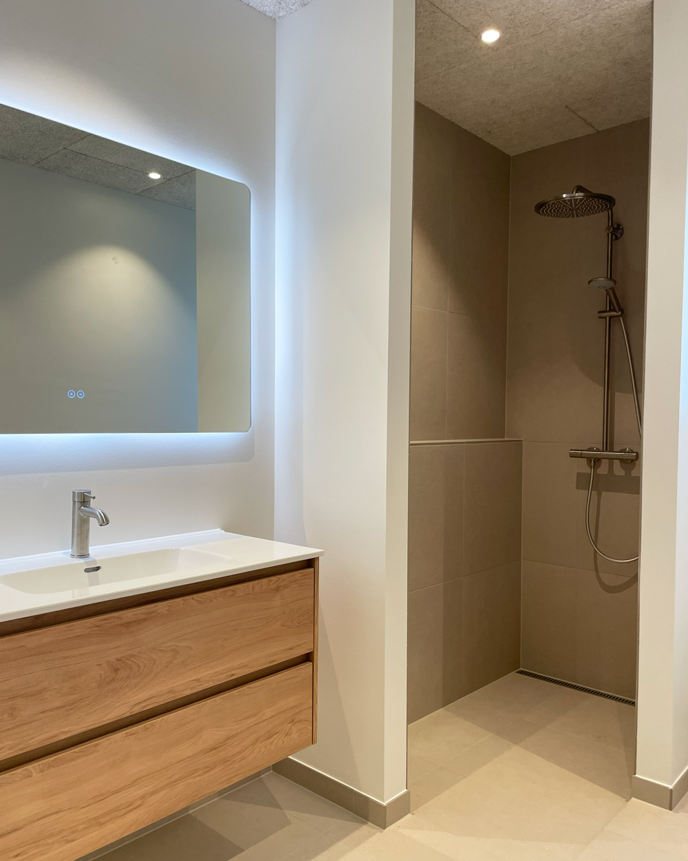 Vi har afleveret et 160 m² længehus til Laura og Andreas på Brendmosen i Funder. Huset er opført i den lysegrå mursten RT 473 Como, og den integrerede dobbelte carport fuldender facadens rolige udtryk. Inde i boligen går hvide elementer og varme egetræsoverflader igen på både badeværelser og i køkken-alrummet. Badeværelserne har flotte og særlige brusehylder, og køkken-alrummet rummer to indbyggede hvide skabsnicher samt et stort skjult viktualierum. Hjemmet afrundes med en gennemført gardinpakke med lette hvide gardiner inderst og tunge beige gardiner yderst. Køkkenet er udstyret med stålvask og Quooker.