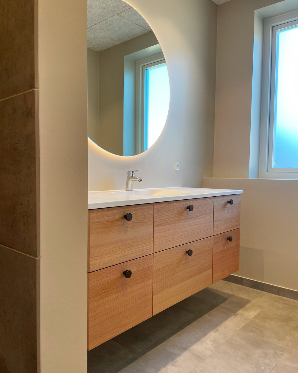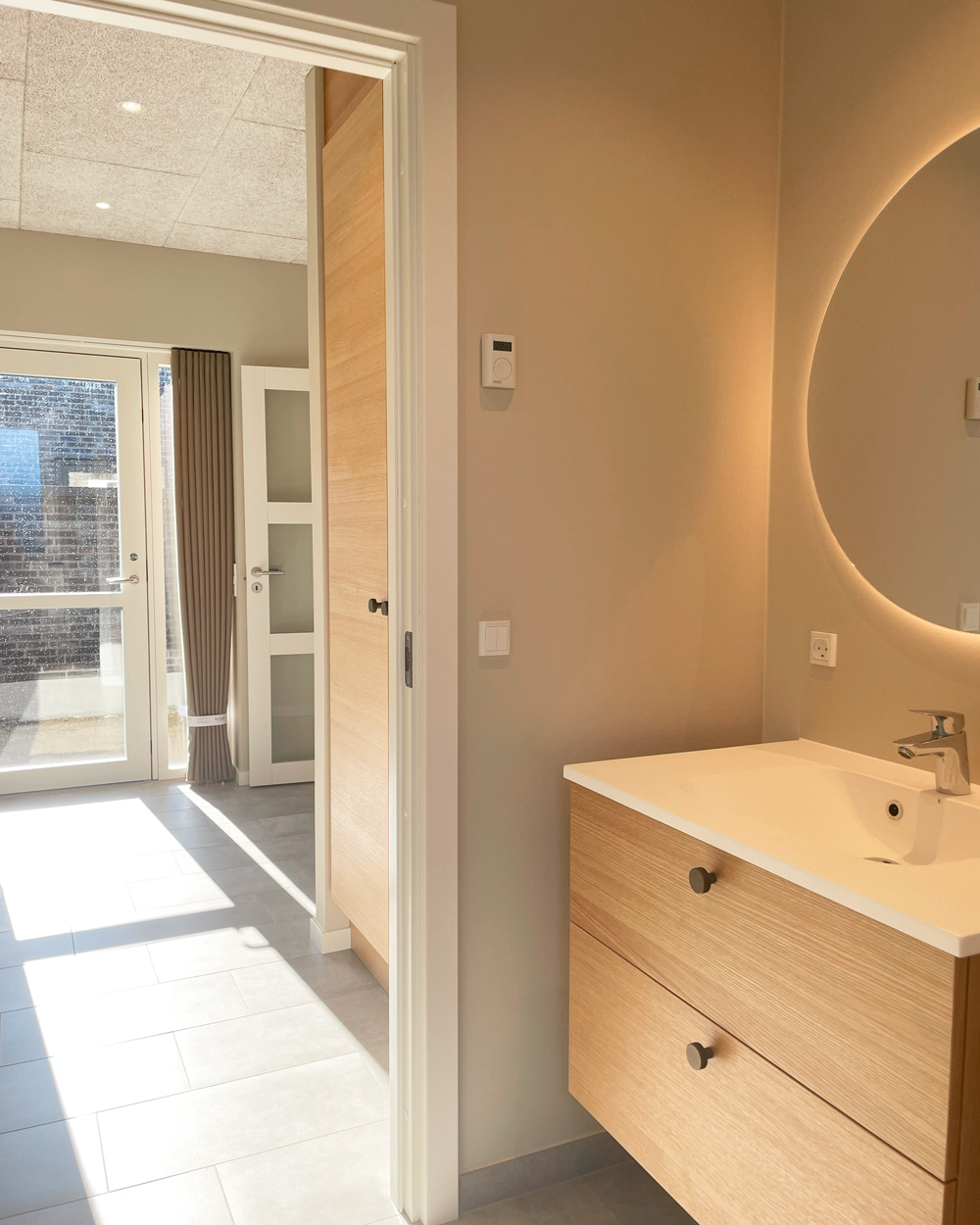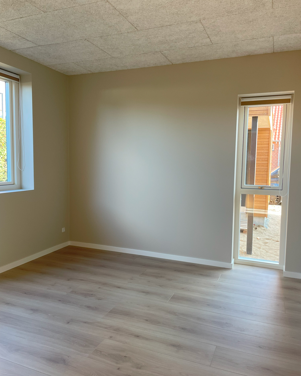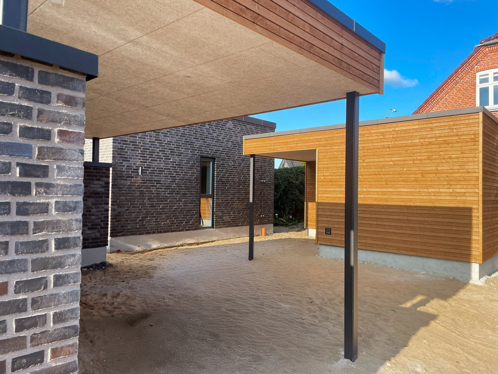 Vi har netop afleveret et lyst og moderne dobbelthus på 120 m2 til Lars og Sarah. Hjemmet rummer entre, bryggers, værelse, badeværelse, køkken-alrum, stue samt soveværelse med eget badeværelse. Her går lyse egetræselementer igen i flere rum, mens køkkenet står klassisk i hvidt. Master bathroom er udstyret med ekstra skabsplads og praktiske detaljer. En hyggelig gårdhave på 25 m2 samt carport og udhus gør boligen komplet. Vi ønsker Lars og Sarah stort tillykke og mange gode minder i deres nye hjem!