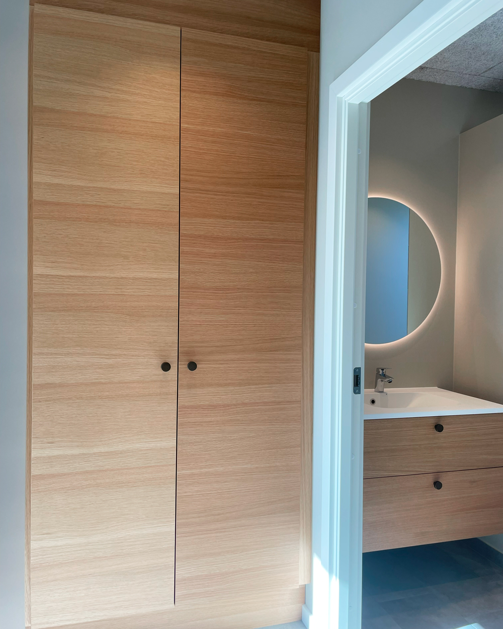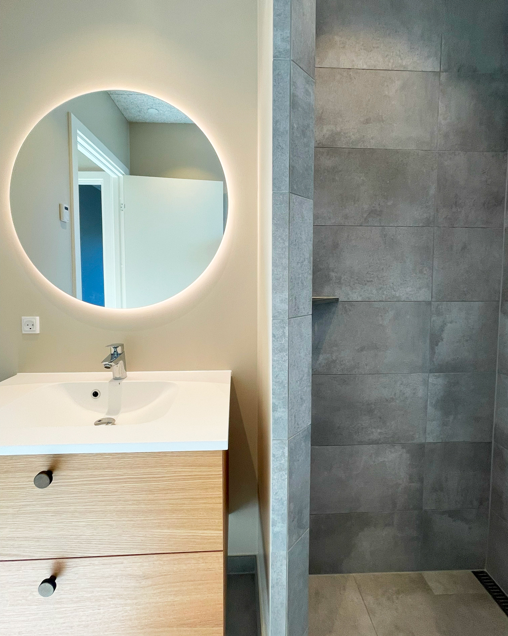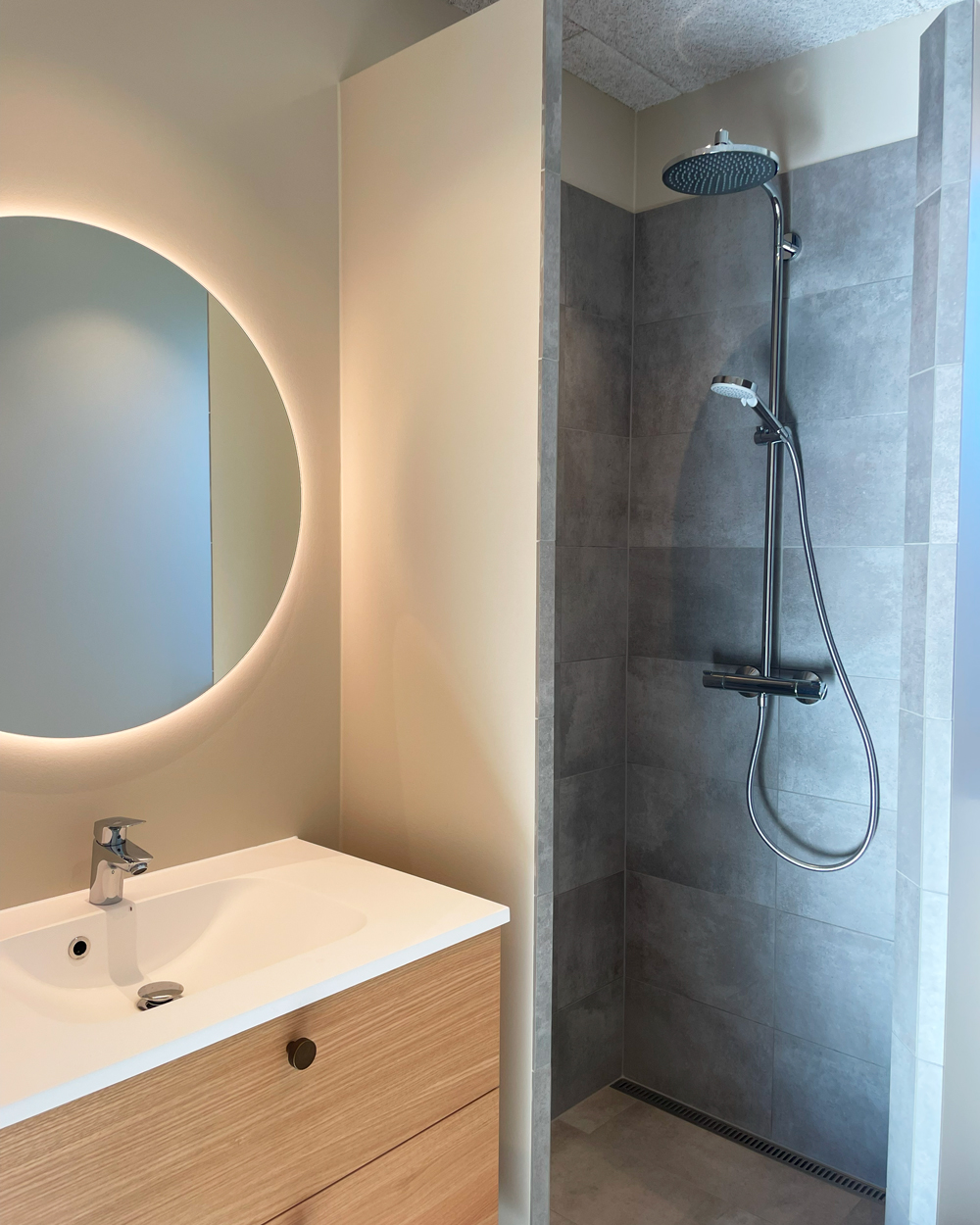Vi har netop afleveret et lyst og moderne dobbelthus på 120 m2 til Lars og Sarah. Hjemmet rummer entre, bryggers, værelse, badeværelse, køkken-alrum, stue samt soveværelse med eget badeværelse. Her går lyse egetræselementer igen i flere rum, mens køkkenet står klassisk i hvidt. Master bathroom er udstyret med ekstra skabsplads og praktiske detaljer. En hyggelig gårdhave på 25 m2 samt carport og udhus gør boligen komplet. Vi ønsker Lars og Sarah stort tillykke og mange gode minder i deres nye hjem!
