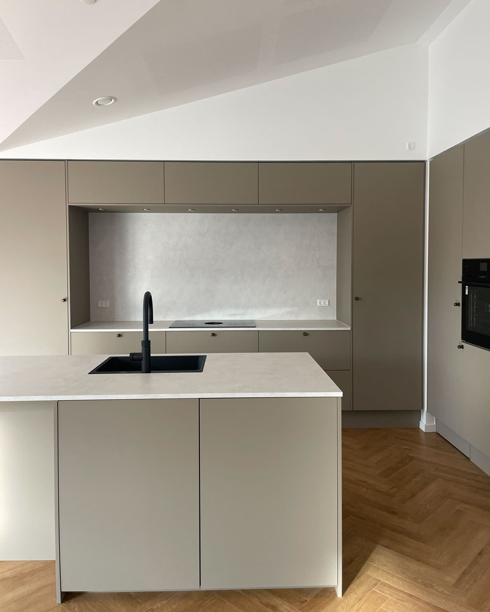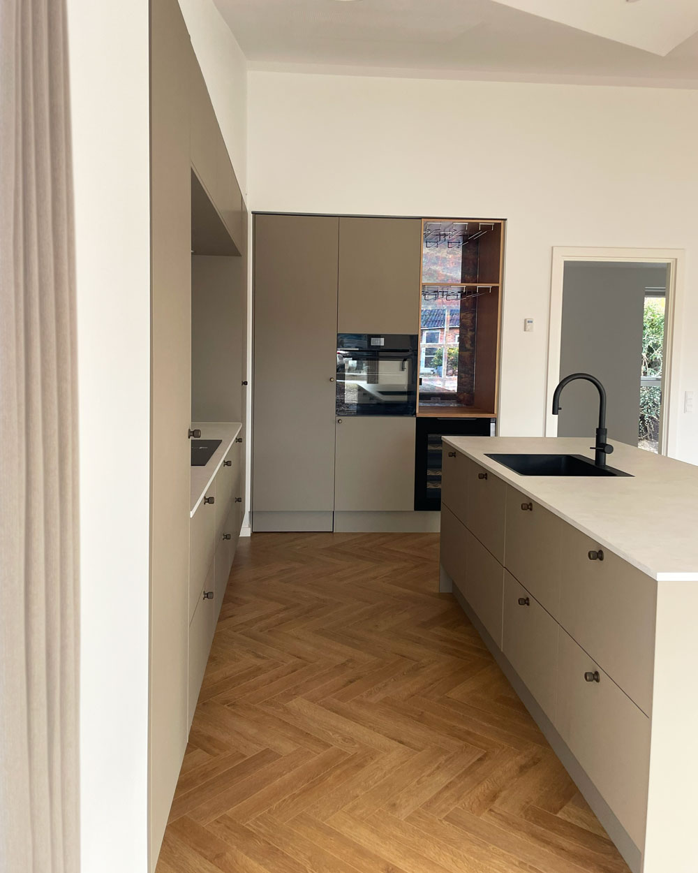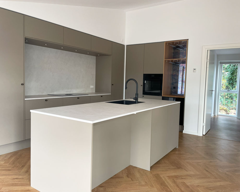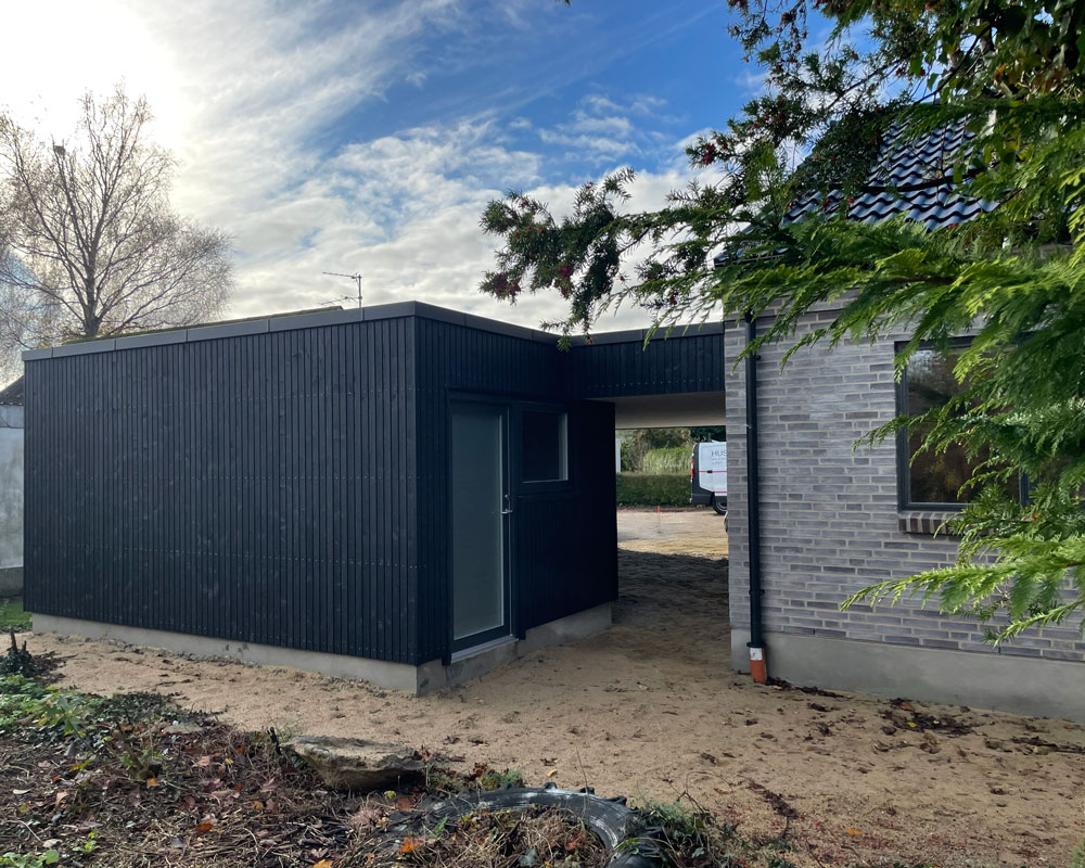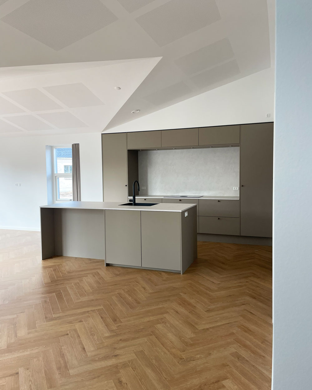 Vi har afleveret et 140 m² vinkelhus til Simon og Mette i Gustavsgade, Alderslyst. Huset byder på sildebensgulv gennem de centrale rum, beige mosaikklinker i entre, bryggers og badeværelser samt loft til kip med akustikfelter. Begge badeværelser har retro klinker i brusenichen med indbyggede hylder. Derudover rummer huset walk-in, indbygget kontorniché og en hyggelig alkove i gangarealet. Køkken-alrummet er stort og åbent med vinkøleskab, skjult depotrum og en bar-stemning skabt af indbygget vinglasholder. Udenfor er der etableret dobbelt carport.