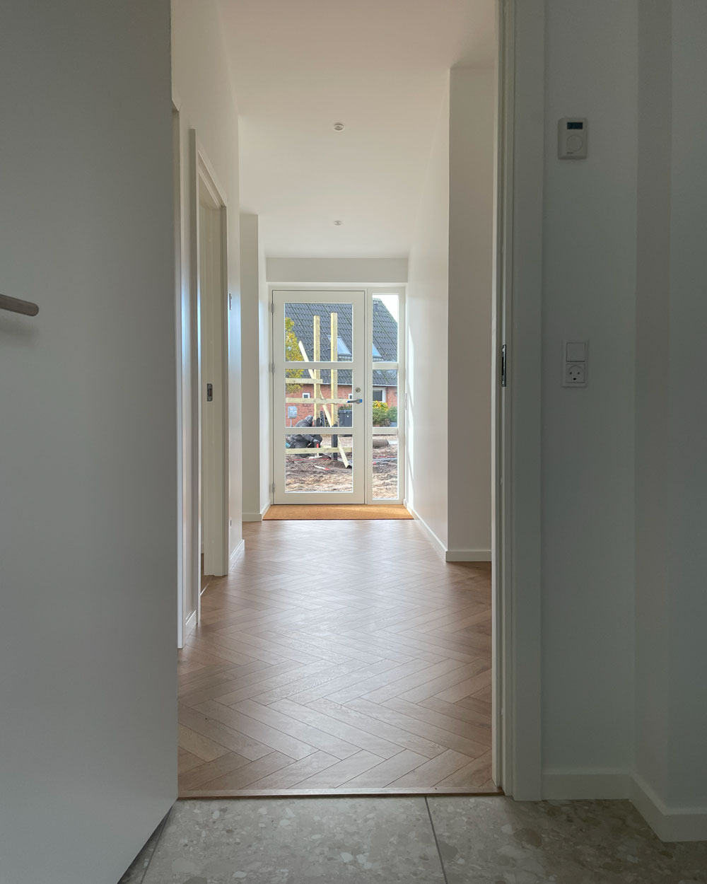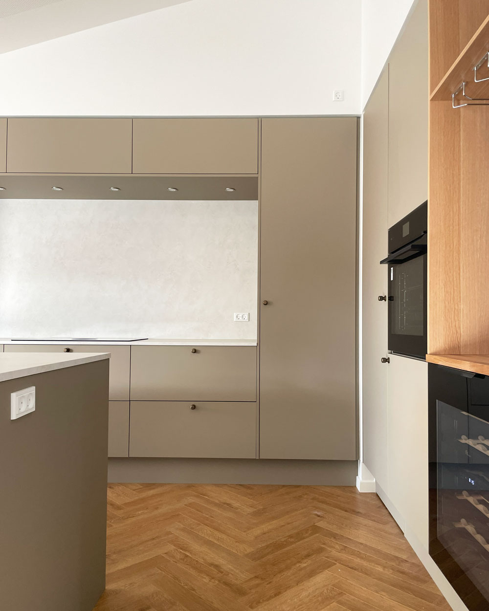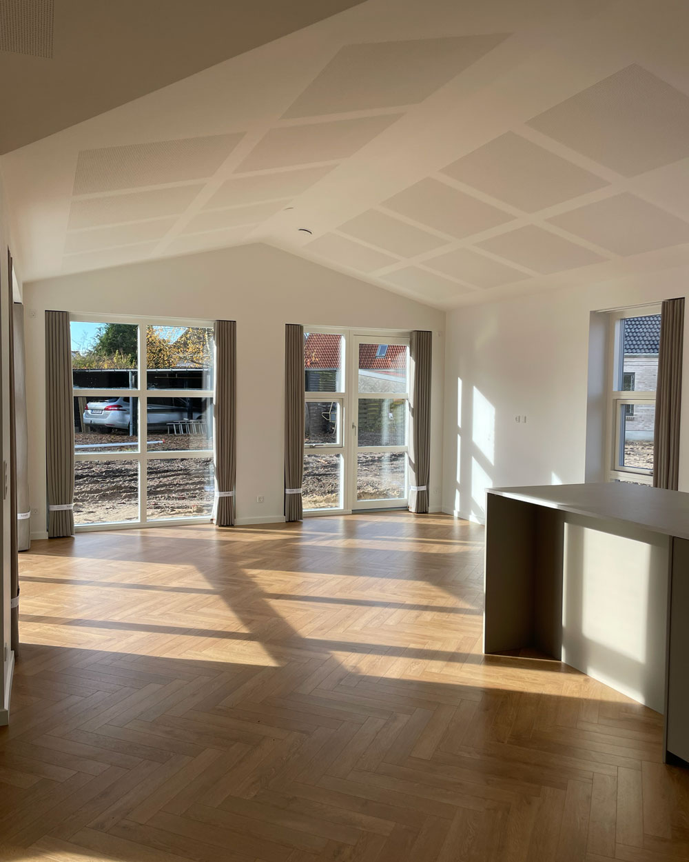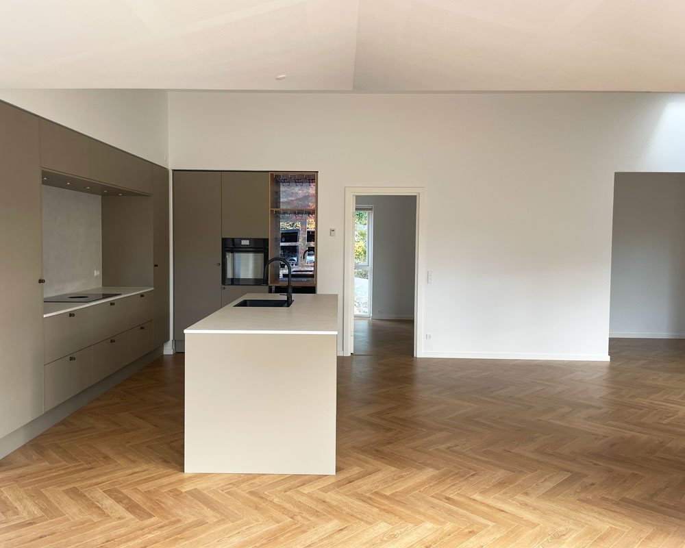 Vi har afleveret et 140 m² vinkelhus til Simon og Mette i Gustavsgade, Alderslyst. Huset byder på sildebensgulv gennem de centrale rum, beige mosaikklinker i entre, bryggers og badeværelser samt loft til kip med akustikfelter. Begge badeværelser har retro klinker i brusenichen med indbyggede hylder. Derudover rummer huset walk-in, indbygget kontorniché og en hyggelig alkove i gangarealet. Køkken-alrummet er stort og åbent med vinkøleskab, skjult depotrum og en bar-stemning skabt af indbygget vinglasholder. Udenfor er der etableret dobbelt carport.